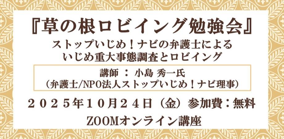 『草の根ロビイング勉強会』~ストップいじめ!ナビの弁護士によるいじめ重大事態調査とロビイング